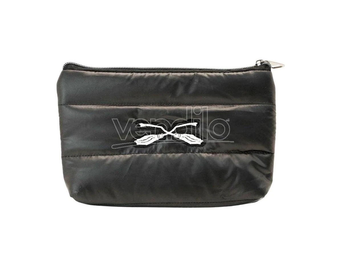 Dimensioni: 22x14x4 cm. Astuccio a uno scomparto con cerniera. Corpo esterno in materiale imbottito e interno foderato.