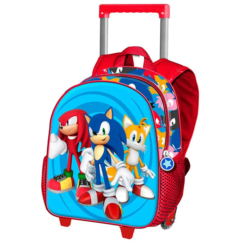 Zaino per bambini con 2 ruote e rilievo frontale.